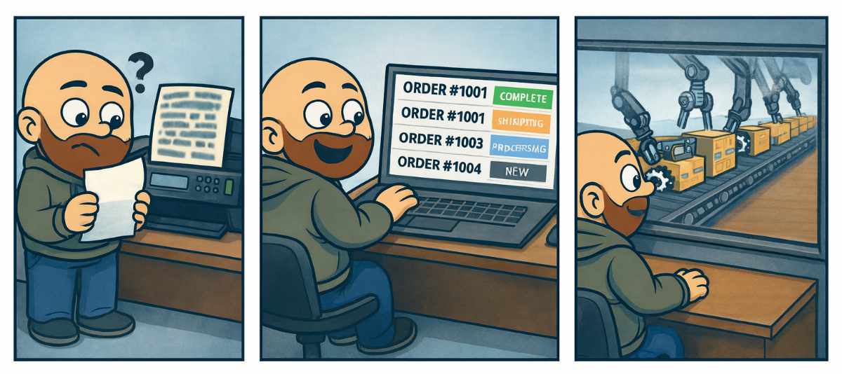 It starts with a familiar scene: a blurry fax rolls out of the fax machine, and no one is quite sure what it says. Is the order complete? Was it even received? Who is supposed to act on it?