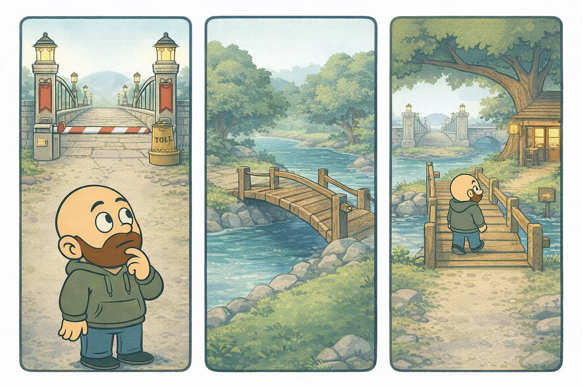 It is a bit like standing at a river with two bridges in front of you. One is ornate and familiar, but it has a toll gate. The other is simple and handmade, and it costs nothing to cross. Both bridges lead to the same place, but each one asks something different from you and from the buyer.